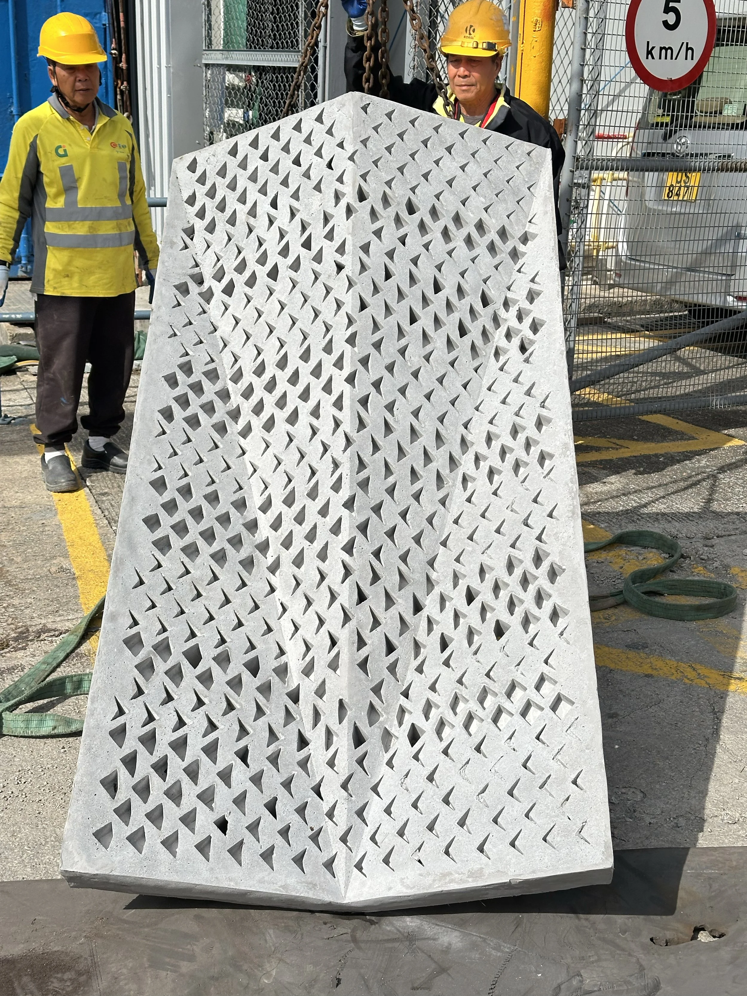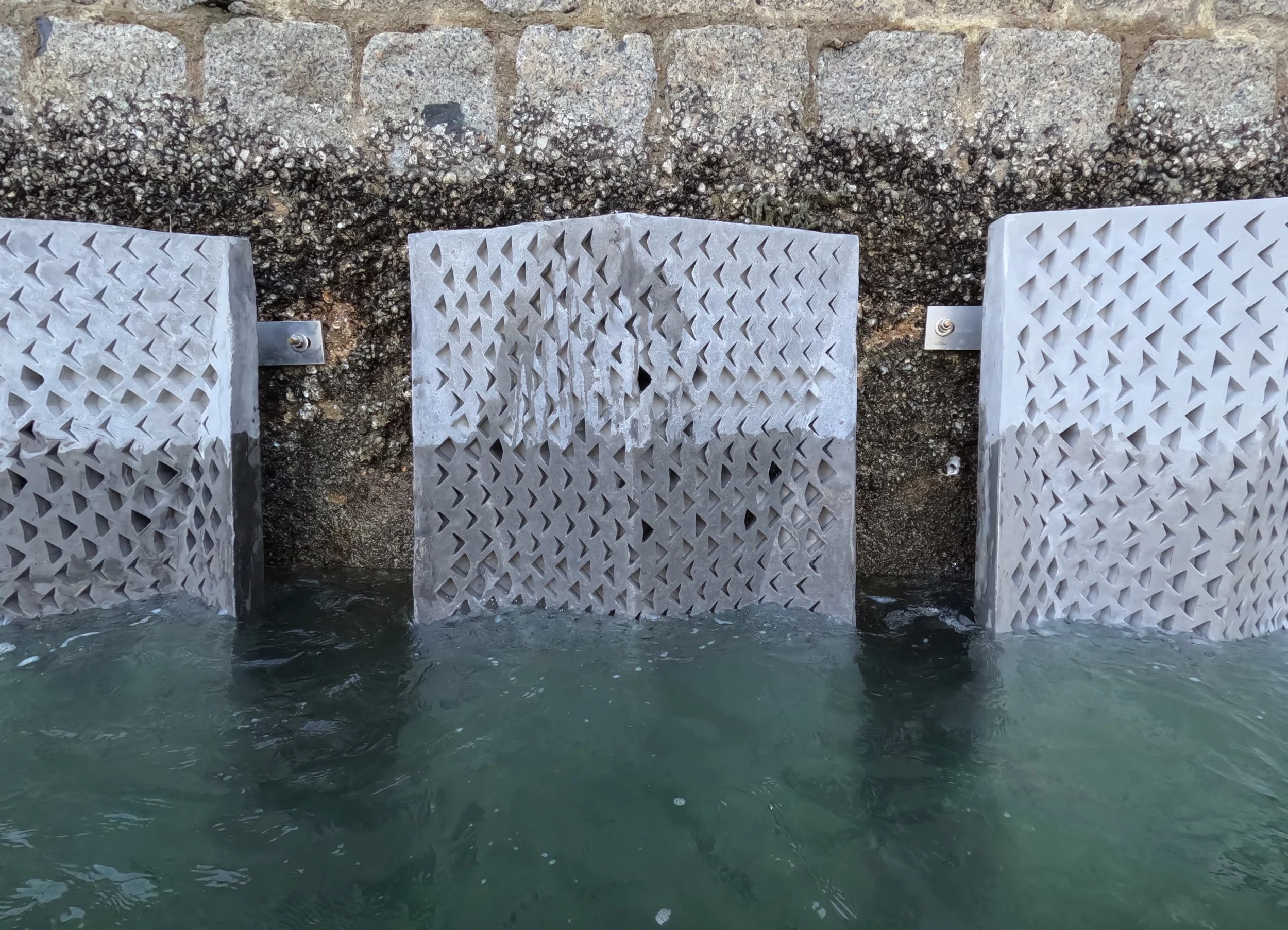 Within only six months our sea wall panels on Lamma Island recruited much more quickly than expected. An entire ecosystem quickly recruited on the surface of the panels. The bare concrete surface of the panels has been completed consumed by marine life. Dozens of species are now supporting an intertidal marine food chain.