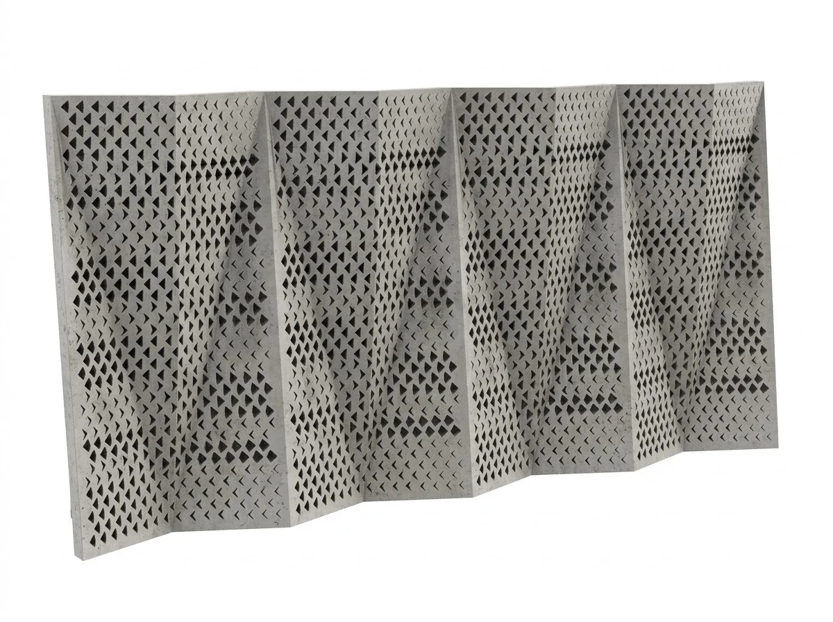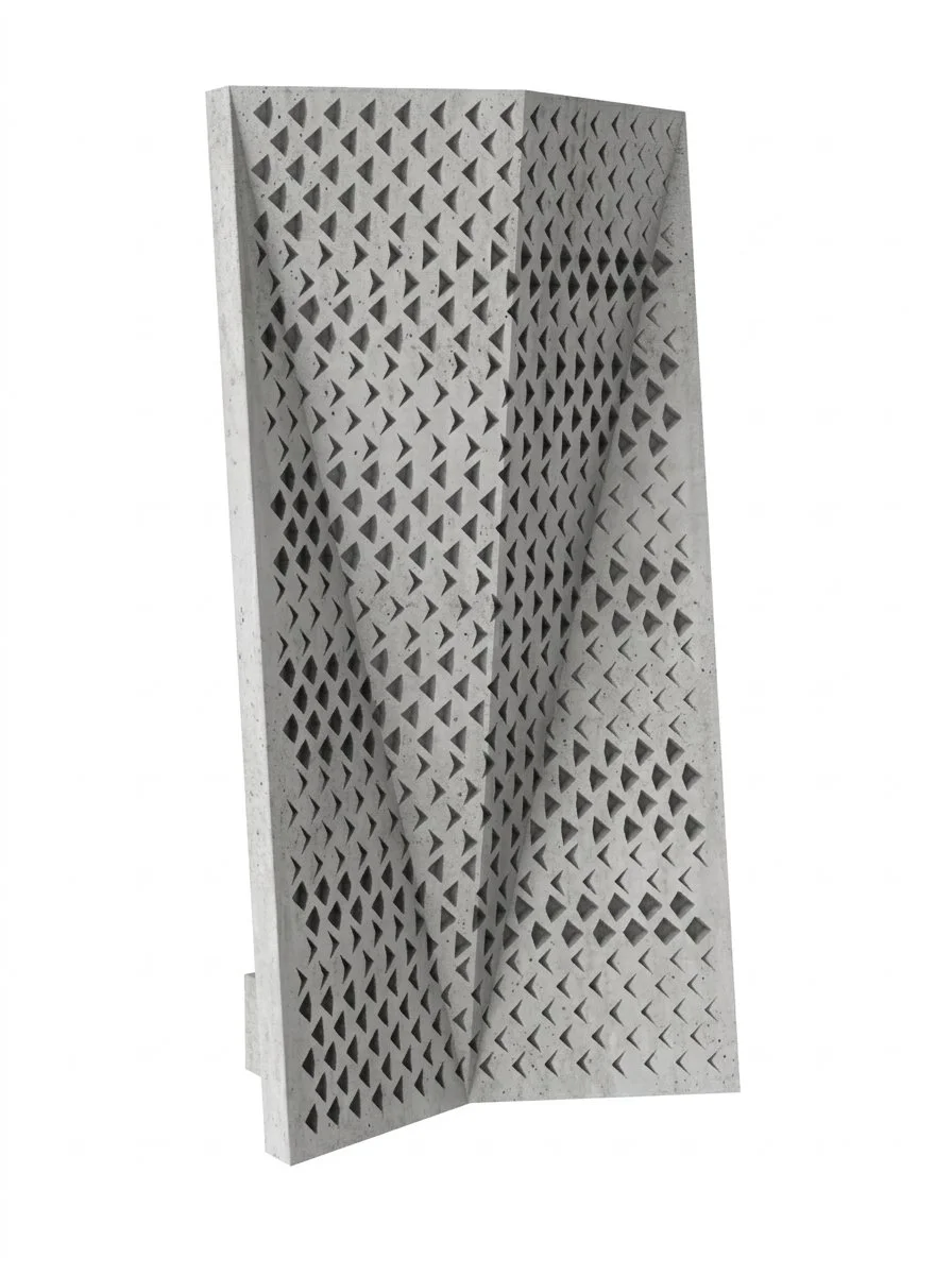 The faceted panel is comprised of dozens of variable sized crevices and pockets, the sharp angles mimic rock cracks found in nature and store water for longer periods between tidal fluctuations, thereby reducing risk of species desiccation. The facets in the panel create variable shading on the surface of the panel as well as provide shade and refuge for species behind the panel, particularly when placed adjacent to one another in a series. Each panel measures 1800mm high x 900mm wide.