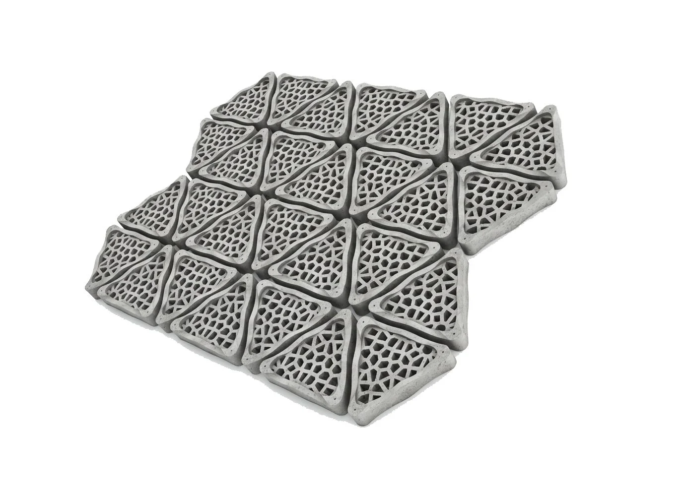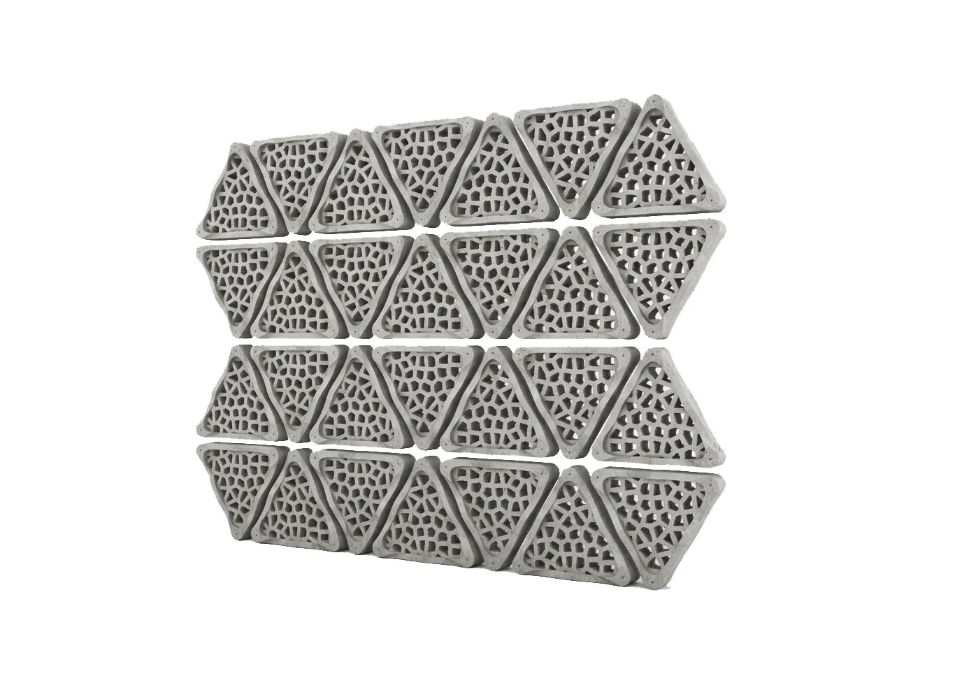 The triangular Tile is a simple but effective means of multiplying the surface area of a seawall, sloped or vertical. The perforated tiles openings create shaded areas for small organisms to colonize with refuge from predation. Additionally, the tiles are suspended a few centimeters off the surface of the wall to allow organisms to also colonize behind the surface of the tile.